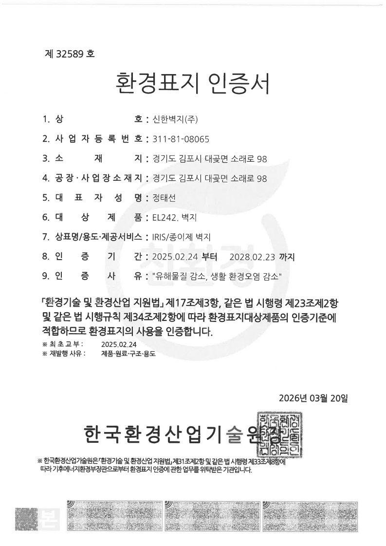 친환경 건축자재 인증서
